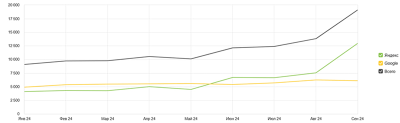 Прирост совокупного поискового трафика составил 110%: