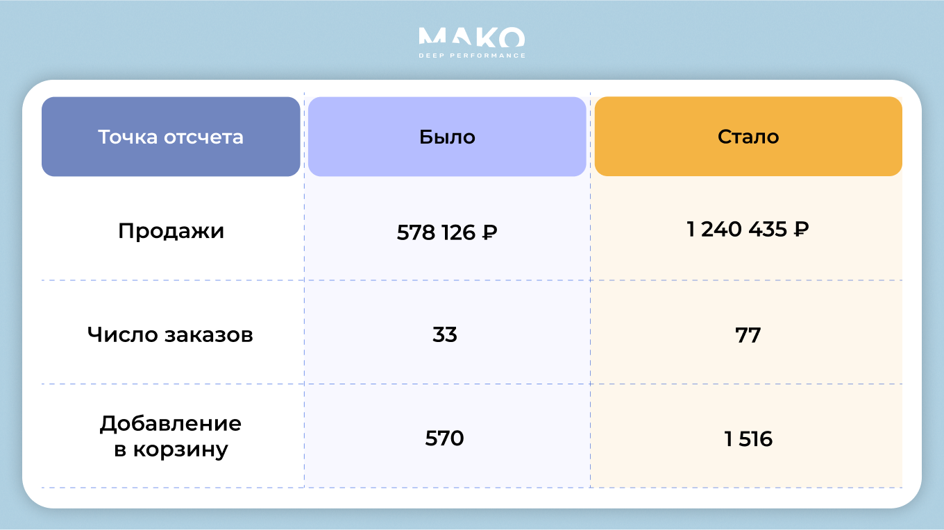 Продажи рекламы увеличились на 662 309 рублей, количество заказов выросло в 2,3 раза.