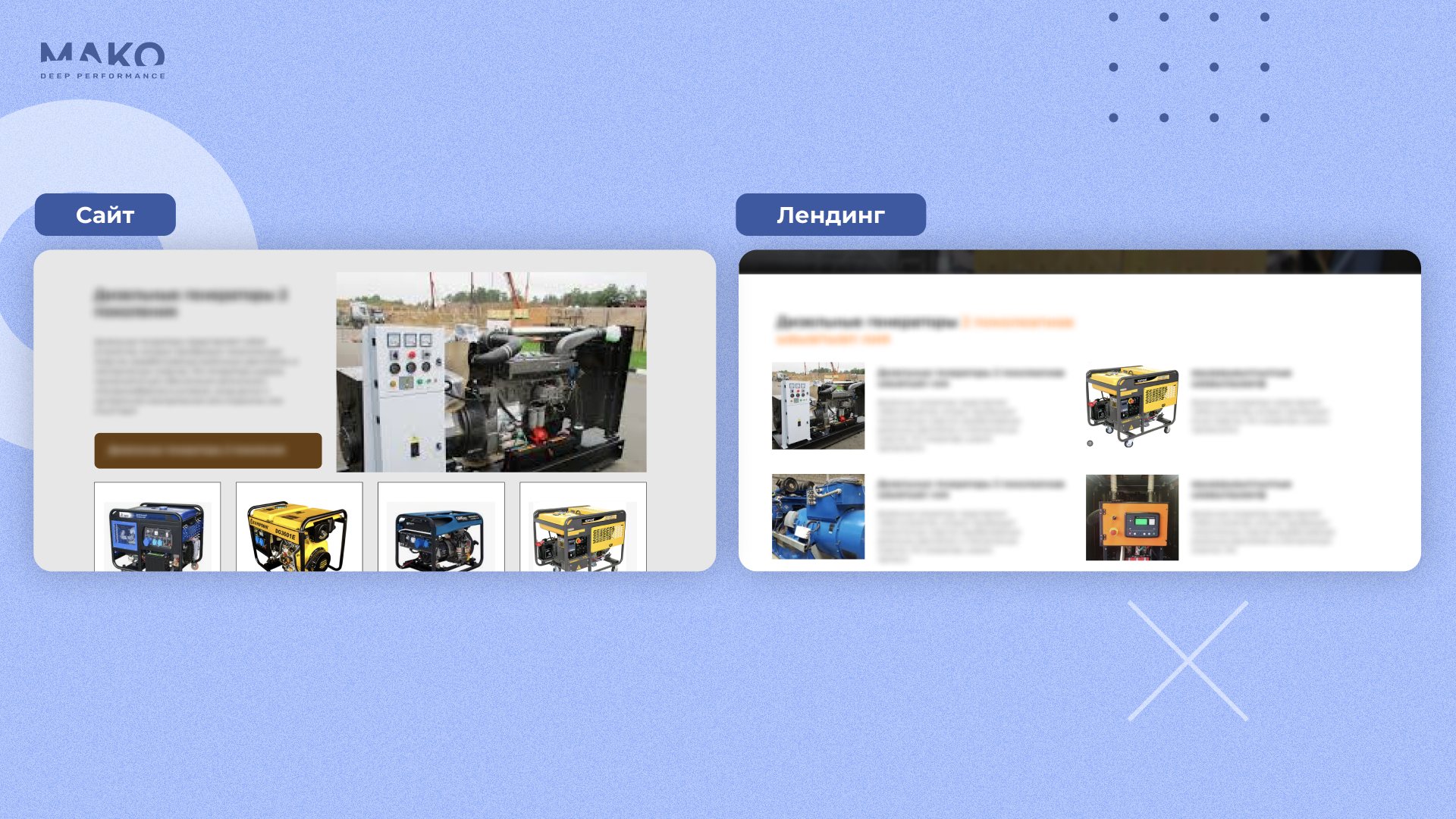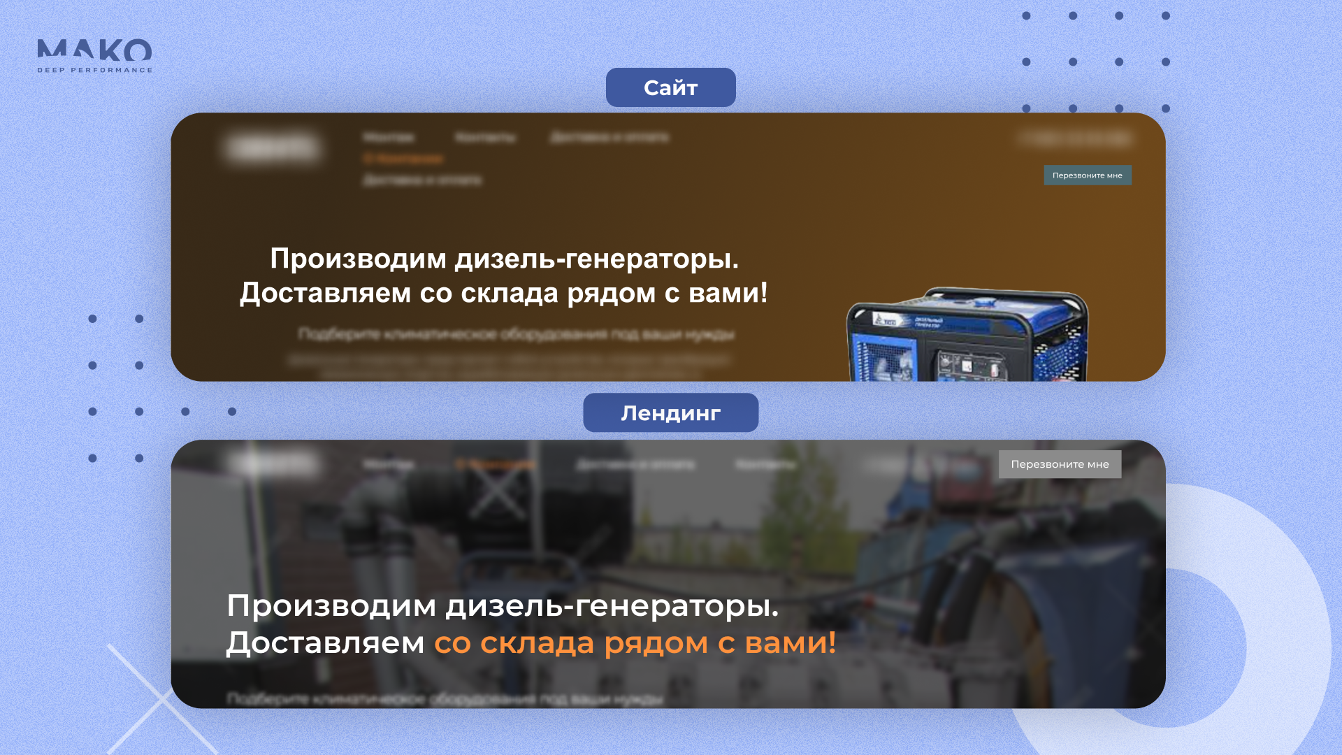 Подробно и глубоко разобрались в поисковых запросах. Использовали не просто фразы типа «дизельная станция», а популярные в этой нише фразы: ДГУ, ТГ, ДС. Добавили дополнительные запросы: «в контейнере» или «на багажнике». Важно было охватить высокочастотные, средние и низкочастотные запросы.