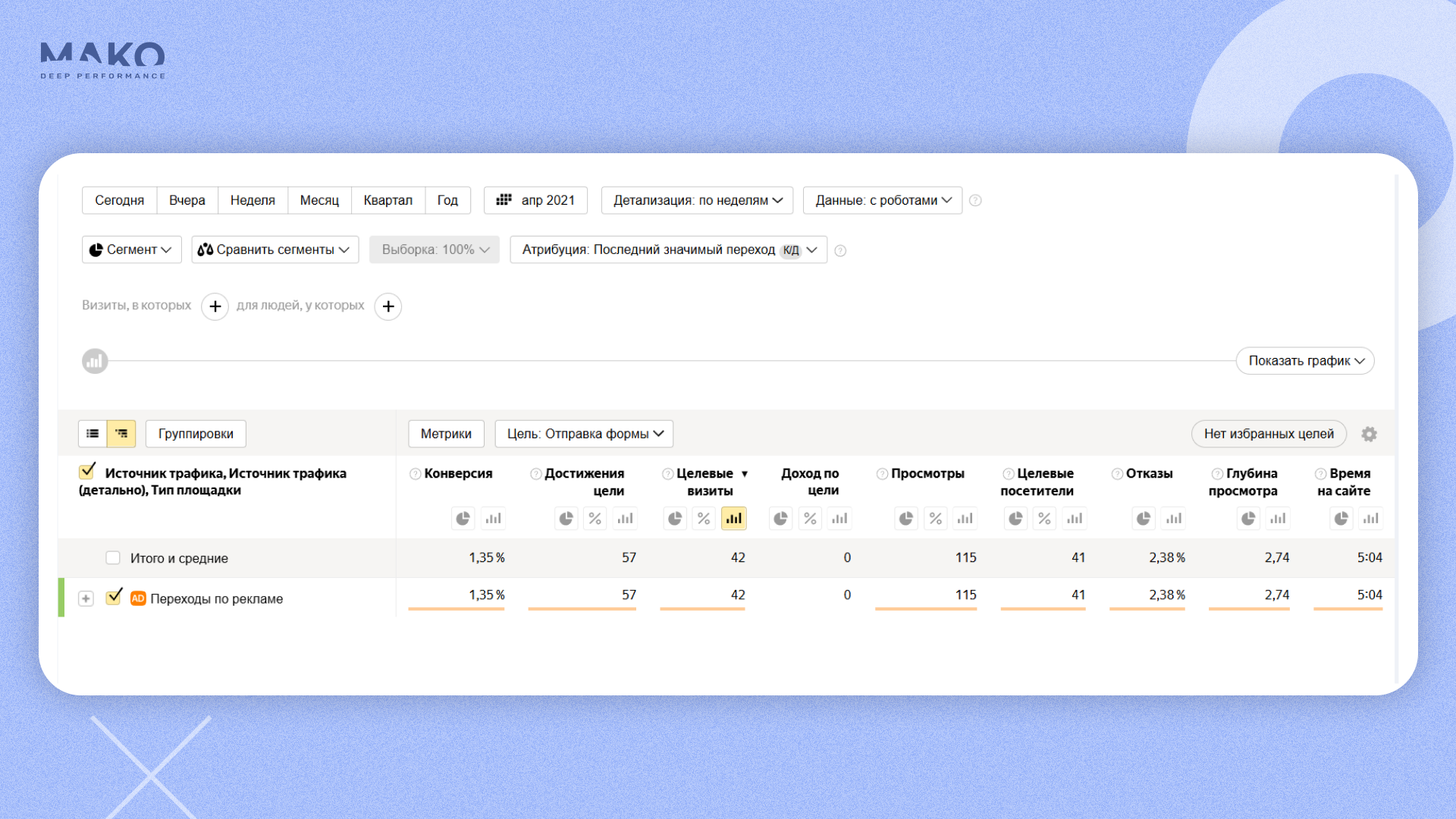На этом скрине из Яндекс Метрики видно, что только 1,35% пользователей оставляли заявки.