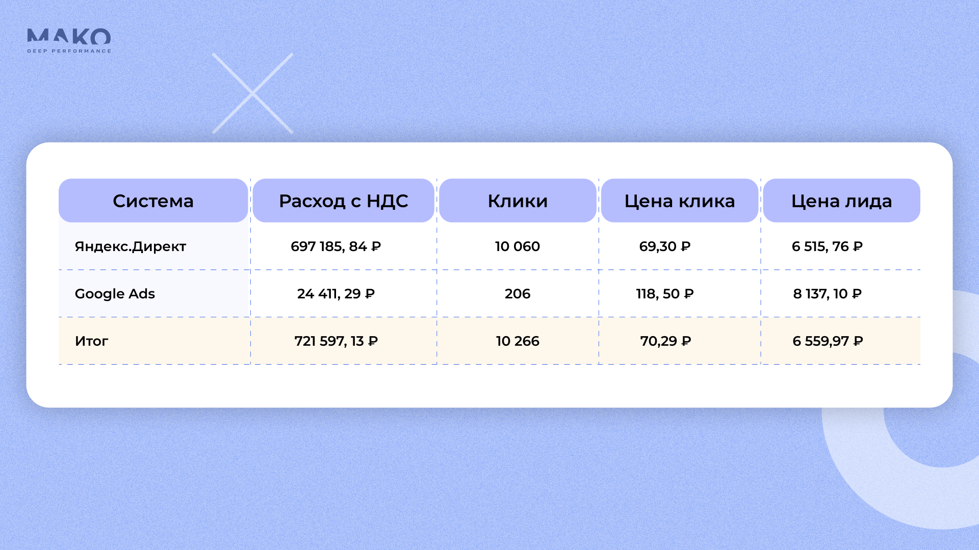 Так мы узнали в лицо небольшой объем нашей аудитории. И стал передавать данные о качественных лидах в Яндекс Метрику. Все рекламные кампании перевели на обучение по квалифицированным лидам. Теперь алгоритмы определены, какая аудитория для нас выгоднее всего и привели именно ее.