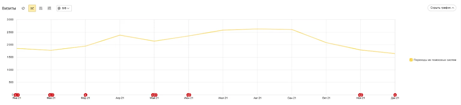 - Минимальный трафик: ежедневно сайт посещало около 300 человек, из которых лишь главный фактор оставляли заявки.