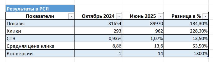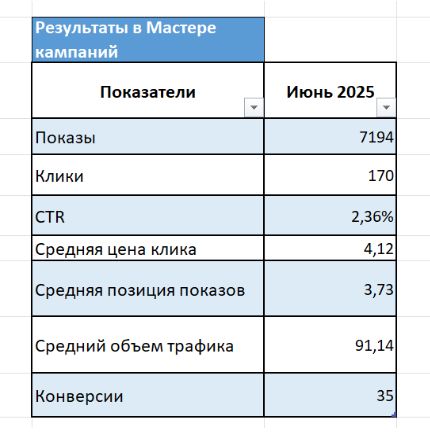 В июне 2025 года в качестве еще одной гипотезы мы подключили управляемый тип рекламы Яндекса, в котором система самостоятельно подбирает оптимальные форматы объявлений (текст, графика, видео) и размещает их в разных каналах: поиске, РСЯ, Кинопоиск, Дзен и других.