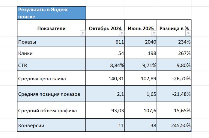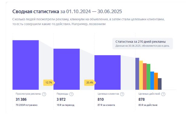 Как отмечает клиент: «Заявки есть, процент целевых обращений вырос. Приходят заинтересованные клиенты, даже если сразу не покупают — идут на бесплатную консультацию. Реклама работает и приводит нужных людей».