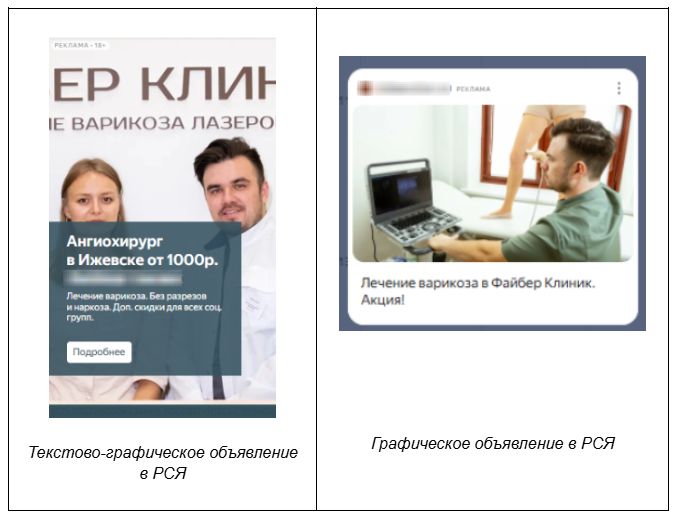 Благодаря объявлениям разных форм и размеров, клиника показывается на разных площадках РСЯ, и тем самым противодействуют большему количеству других.