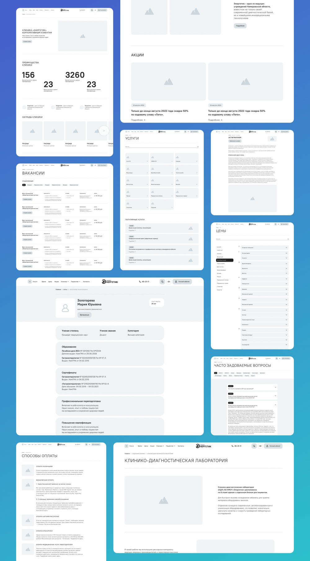 Визуал был важной частью этого проекта, так как команда «Энергетика» хотела создать имидж современной цифровой клиники. Сайт — это лицо компании в сети, и без стильного дизайна эту задачу не решить.