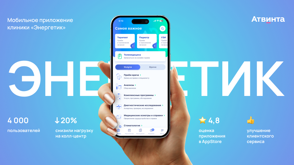 Несколько лет назад клиника «Энергетик» заказала у нас разработку национального приложения . Мы создаем приложение с удобными удобствами для пациентов: