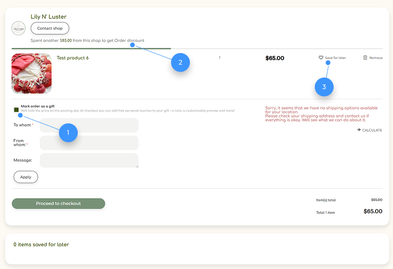 3. Покупатели могут перемещать товары из корзин в специальный раздел отложенных товаров. В любой момент они смогут вернуть эти товары обратно в корзину и оформить покупку.