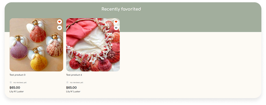 Блок «Недавно добавленные в избранное» появляется на главной странице, если клиент отмечает товар или товары как понравившиеся.