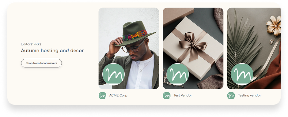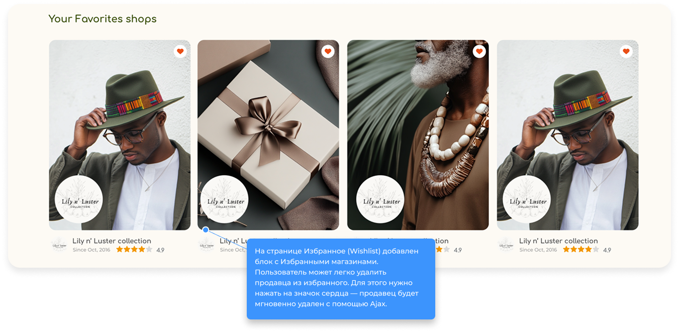 Добавили блок с Избранными торговыми магазинами. При нажатии на предварительное изображение в блоке покупатель переходит на страницу этого продавца. Настройка блока доступна в админ-панели: выбор продавцов и загрузка изображений.