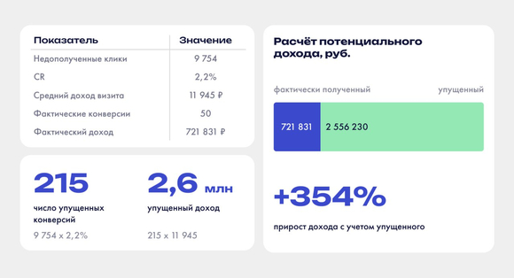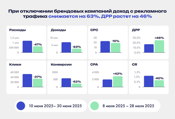 За 20 дней отсутствия брендовых кампаний клиент недополучил 2,6 миллиона рублей выручки. Помимо прямых финансовых потерь, бренд лишился значимой части лояльной аудитории, что в будущем создаст дополнительные сложности для восстановления позиций на рынке.