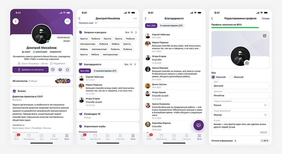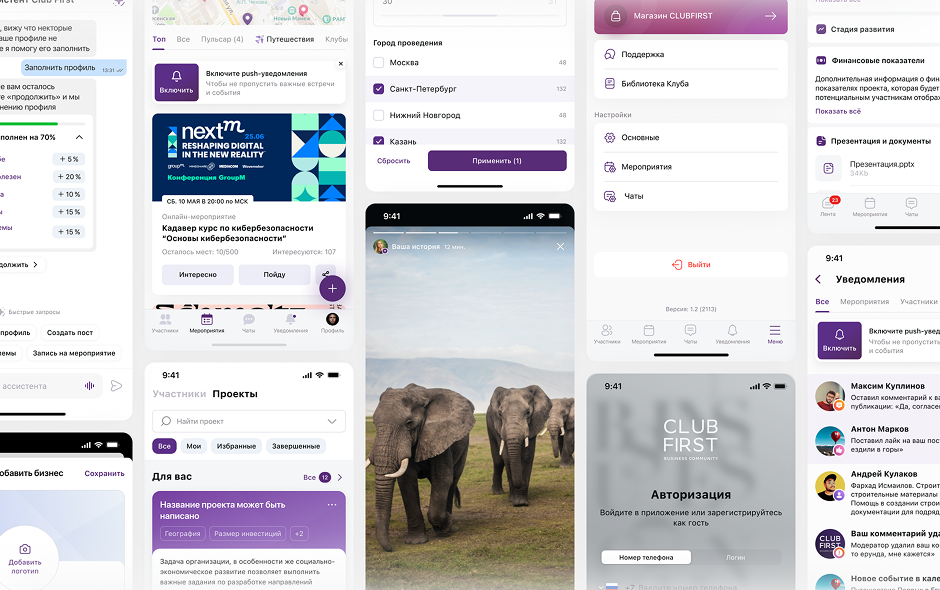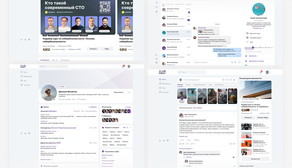 Создать удобный и современный интерфейс для социальной сети от «СБЕРа». «Клуб Первых» — деловое сообщество для собственников и топ-менеджеров среднего и крупного бизнеса. Приложение создается для знакомств, общения, обмена опытом и объединения для больших проектов.