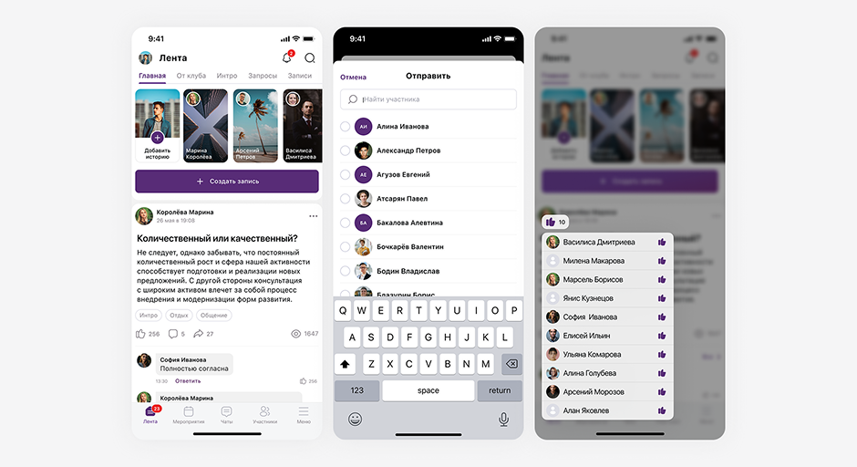 — Изучили конкурентов, среди которых были соцсети, агрегаторы контента ?и прочие приложения, имеющие похожую функциональность с Клубом Первых