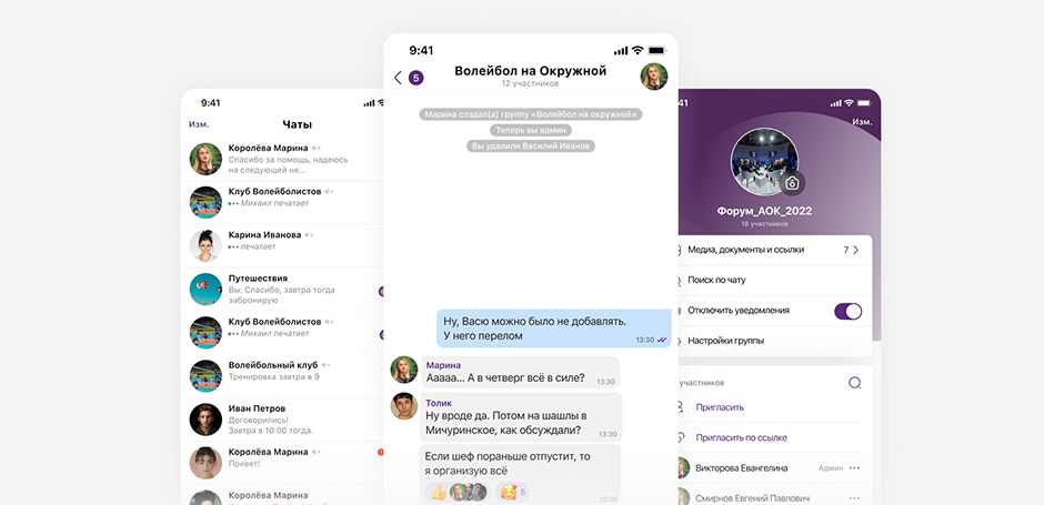 Многофункциональный мессенджер внутри приложения, благодаря которому участники могут общаться друг с другом, не переходя на сторонние ресурсы.