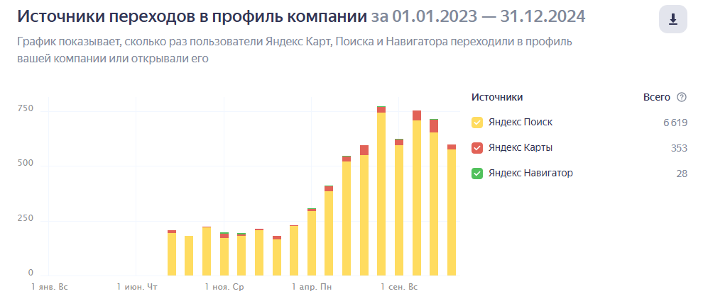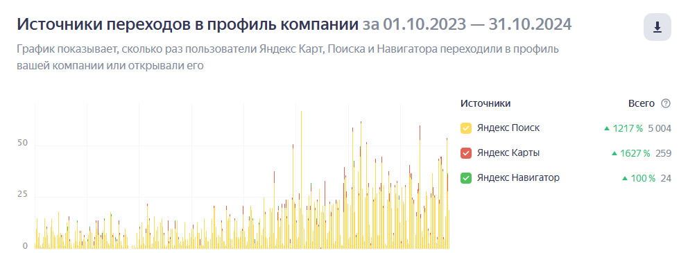 Видно повышение узнаваемости бренда и рост переходов с Яндекс.Карт и Яндекс.Поиска.
