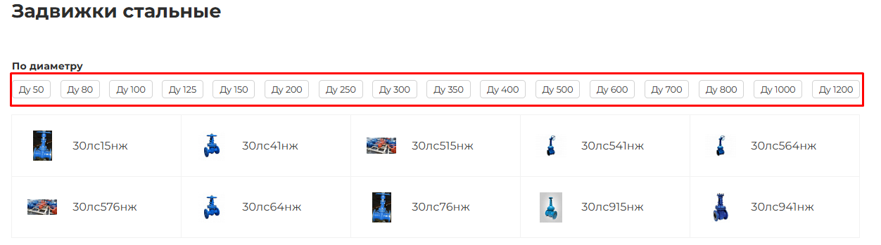 Создано свыше 100 новых страниц по диаметрам и параметрам с помощью модуля SEO-везде, без привлечения программиста.