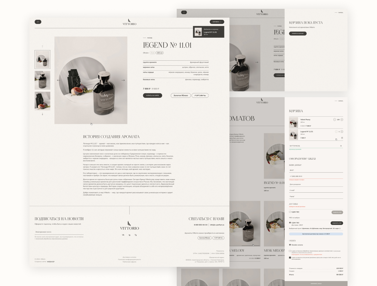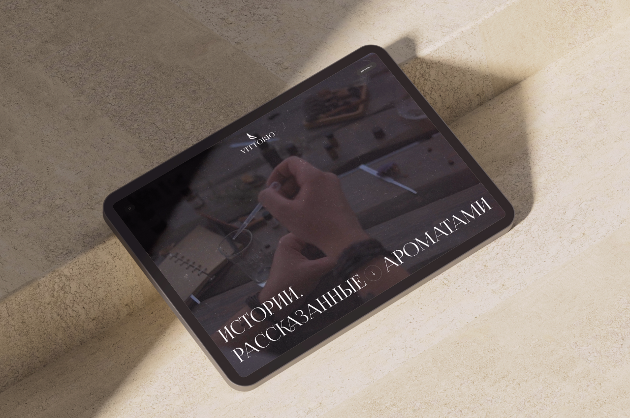 На сайте Vittorio не просто заказывал ароматы, а вовлекал в них, мы добавили анимацию и интерактивные элементы, которые создают эффект «живой» страницы.