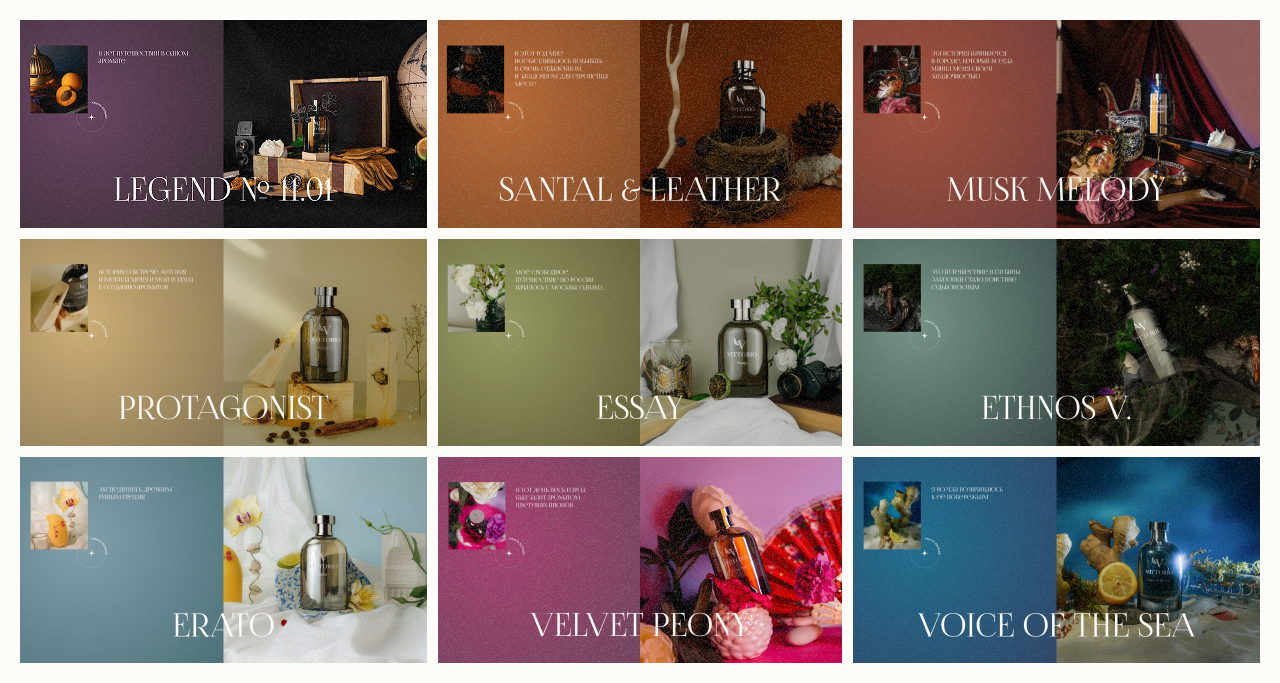 Это не просто каталог, а интерактивное погружение: будто вы путешествуете по миру вместе с автором ароматов, раскрывая их географию и настроение.