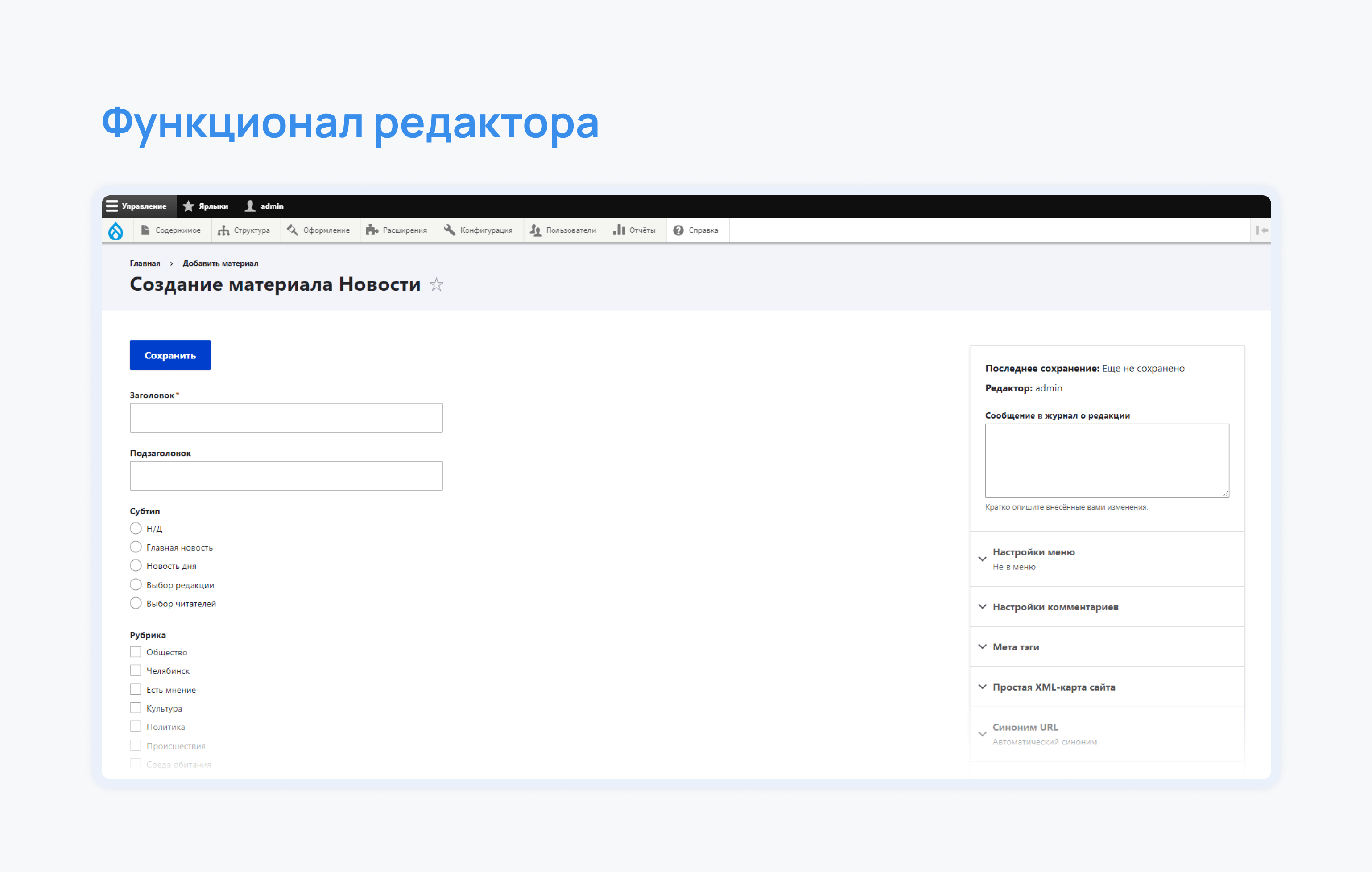 И, конечно, мы позаботились о том, чтобы редакторам статей было максимально комфортно публиковать новости. Мы добавили новый функционал и теперь они могут: