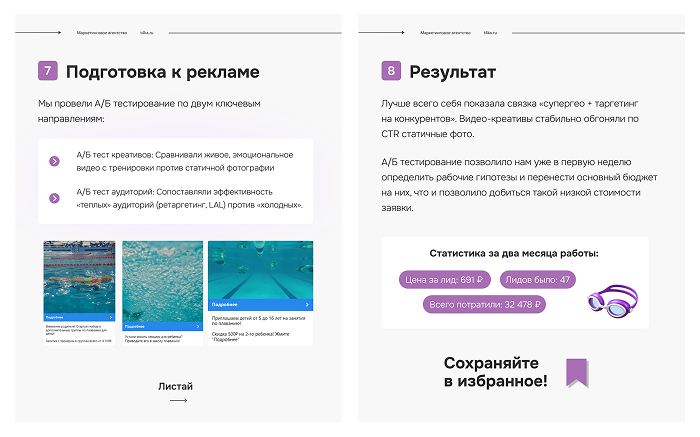 В этом кейсе хочу рассказать, как мы продвигали школу плавания для детей и привлекли клиентам целевые заявки по 691 рублю за штуку.»