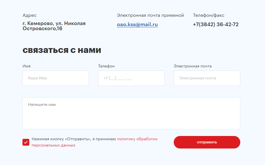 Для оперативной коммуникации в конце страницы размещена форма обратной связи и контакты.