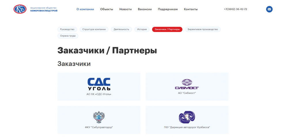 Этот раздел помогает потенциальным партнерам оценить компетенции и опыт предприятия. Для заказчиков «Кемеровоспецстрой» экспертиза, которую мы раскрыли с помощью кейсов, станет весомым фактором при выборе подрядчика.