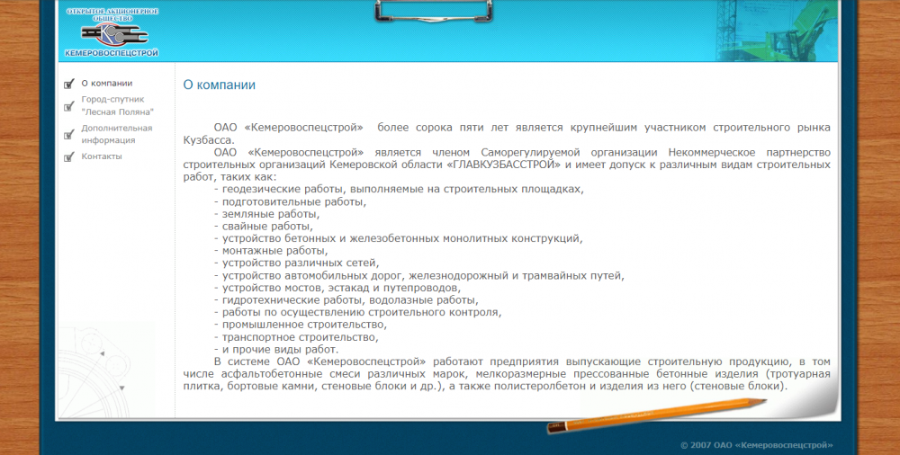Через сайт мы презентуем «Кемеровоспецстрой» как ответственного подрядчика с высокой экспертизой, надежного партнера и востребованную компанию, которая делает жизнь региона лучше.