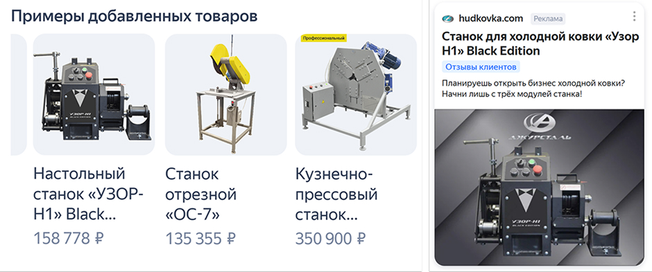 Для настольного станка «УЗОР-Н1» запустили отдельную рекламную кампанию, ведущую на специализированный сайт hudkovka.com, адаптированный под нужды малого бизнеса и мастеров.