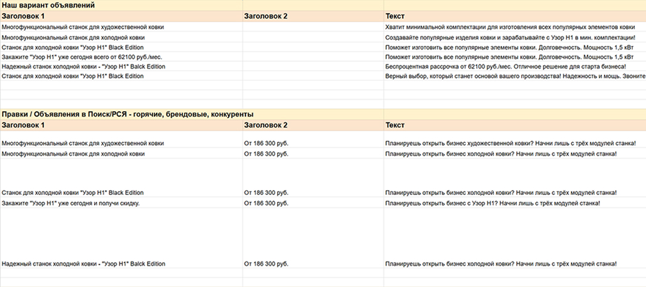 В рамках улучшения РК в «Яндекс.Директ» были выполнены следующие работы.