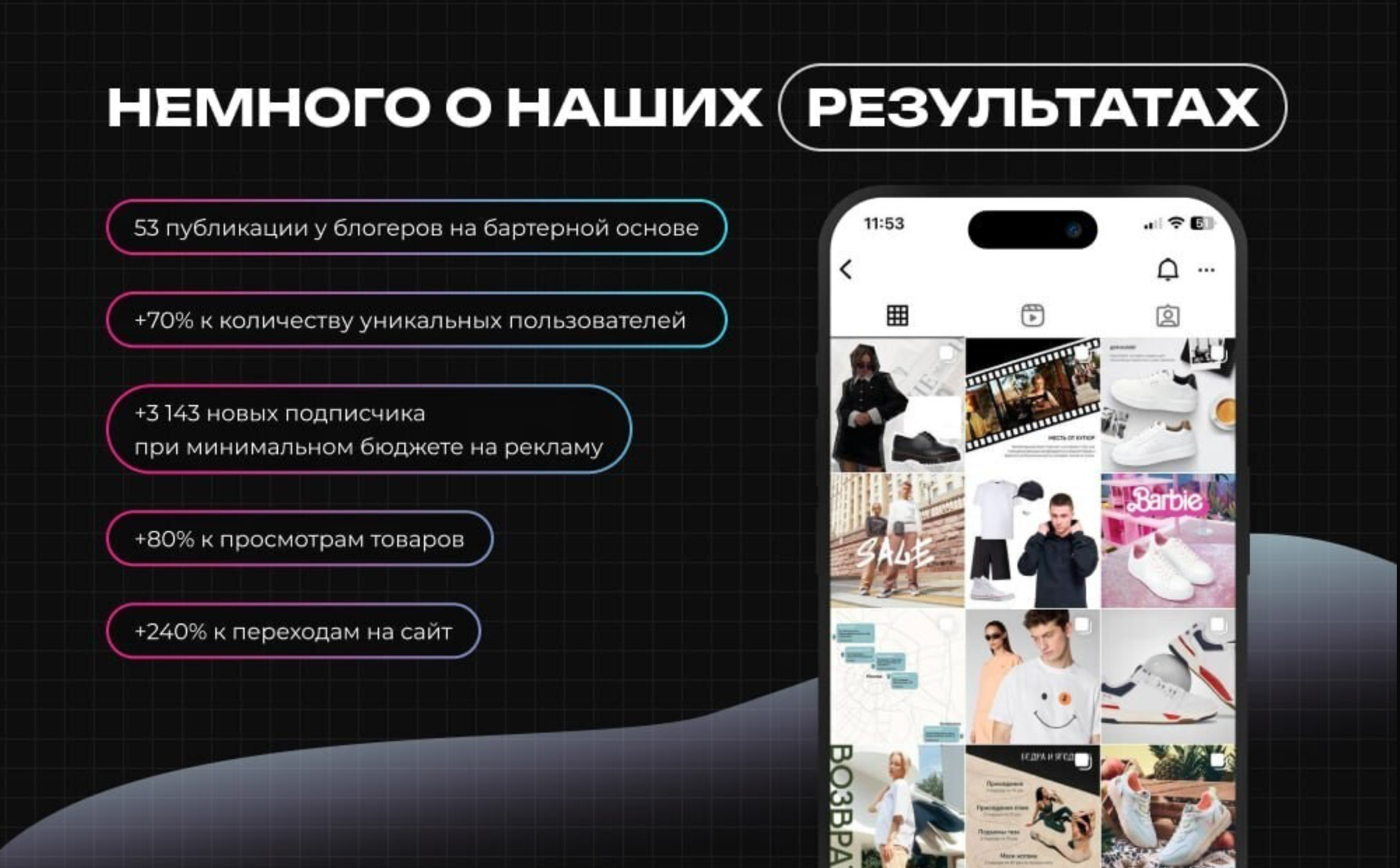 Достижение отличных результатов и всех поставленных KPI возможно благодаря глубокому пониманию целевой аудитории, креативному подходу к созданию контента и применению проверенных инструментов продвижения.