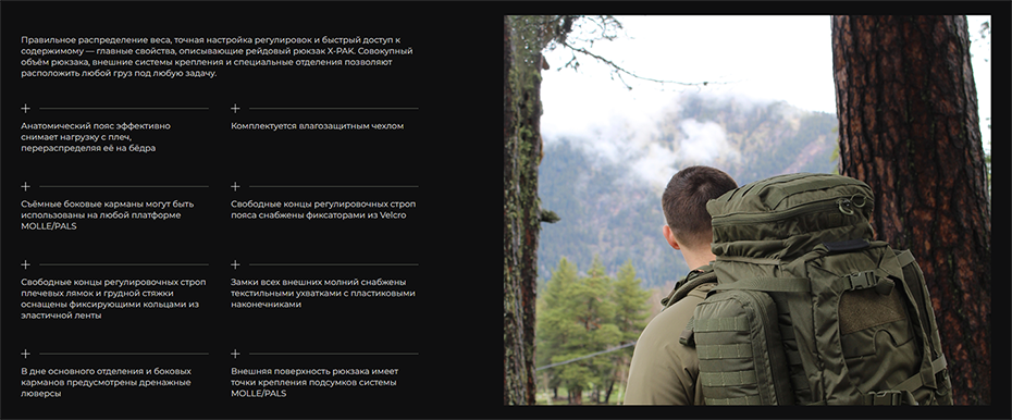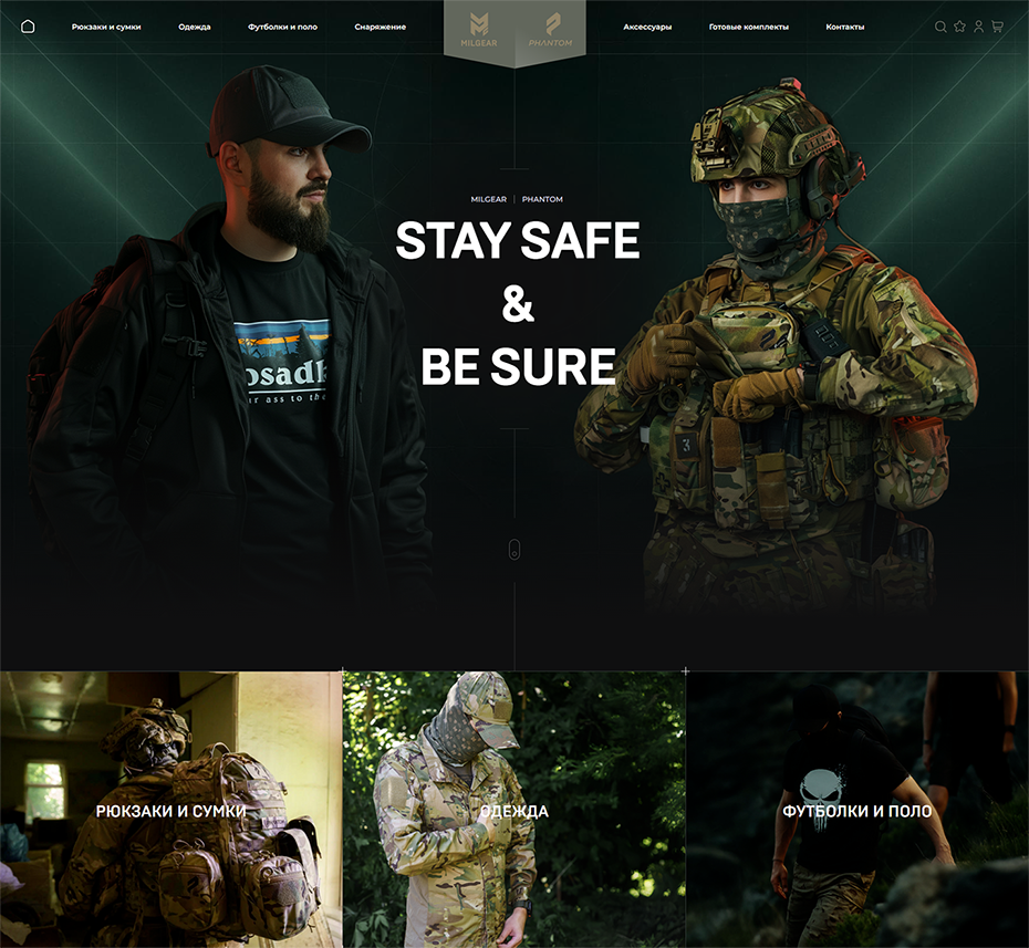 Мы начали с глубоких исследований рынка, изучая лучшие мировые примеры, включая такие референсы, как thrudark.com. Это помогло нам добиться соблюдения стандартов качества в нише тактической экипировки.
