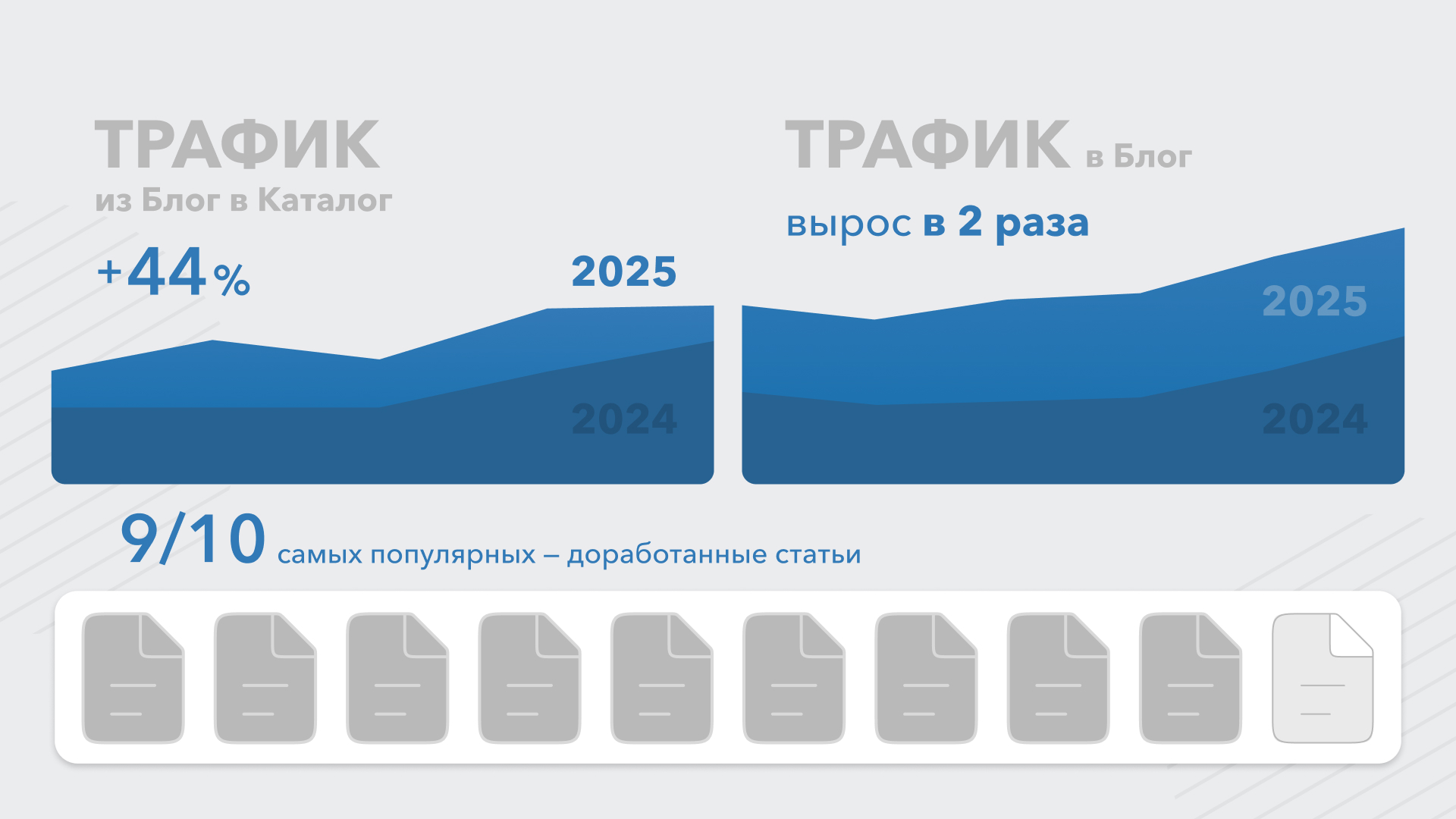 У компании был блог, но мы решили его усилить и целенаправленно оптимизировать под SEO, а также укрепить связь с каталогом — перенаправлять информационный трафик в коммерческий. Сайт — корпоративный. Он знакомит покупателей с продукцией компании, но при этом есть интернет-магазин, в котором можно заказать подходящую шумоизоляцию. Вот туда-то мы и решили перенаправить интерес.