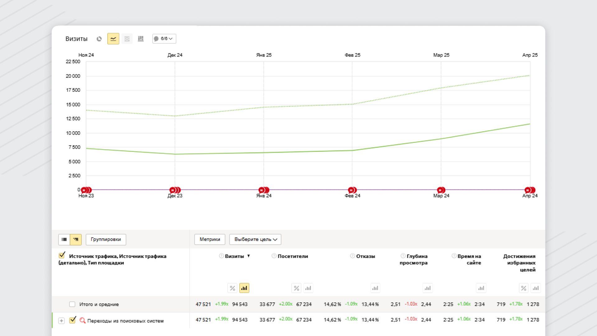 В этой задаче в целях продвижения по информационным запросам мы добились хороших результатов: привлекли посетителей с коммерческим интересом, увеличили видимость и узнаваемость бренда, усилили уже достигнутые результаты.