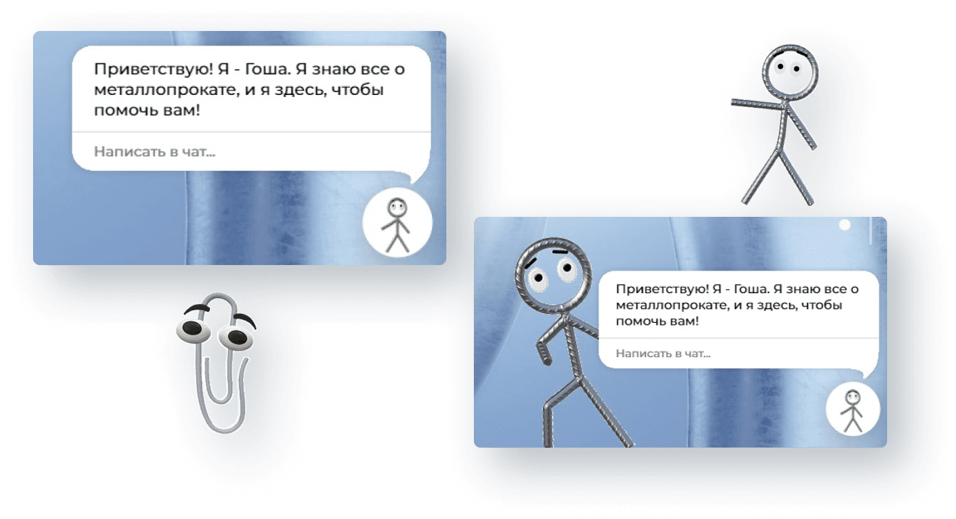 Разработали анимационный помощник Гошу — вдохновились виндовским скрепышом. Гоша помогает пользователю сориентироваться на сайте, создать эффект живого общения.
