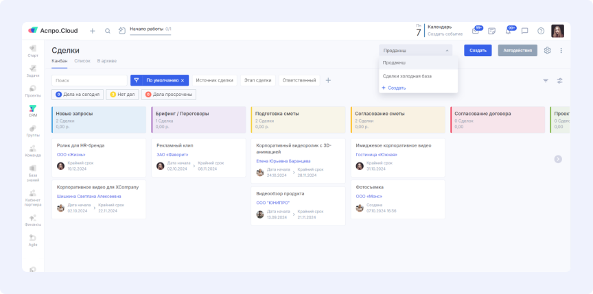 В новой системе удалось реализовать идею с несколькими воронками продаж. Теперь возглавляет процессы для входящих заявок и холодных контактов, что повышает эффективность работы с разными категориями клиентов.