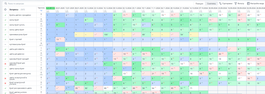 Продвигать сайты в нише флористики всегда основы — конкуренция высокая, ассортимент у клиента был ограниченным. Плюс каталог работал скорее как портфолио: букеты можно заказать, но итоговую композицию можно получить из фото из-за сезонности и национальных цветов. Все это вводило клиентов в заблуждение, снижало конверсию и вызывало жалобы.