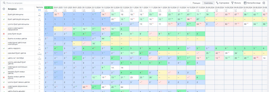 Проблема флористического сайта в том, что люди ищут конкретику: «букет из 51 розы», «букет из пионидных роз», «букет из 5 хризантем». А у клиента этого просто не было. Мы создали 22 новые категории через SEO-модуль АСПРО и написали тексты для каждой. Так сайт закрыл реальный спрос, а не предоставил его конкурентам.