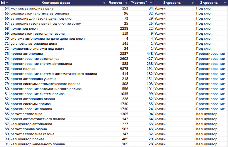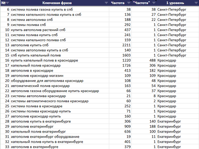 Создание региональных страниц под запросы вида «автополив + город» даст прирост видимости и увеличит целевой трафик на сайт.