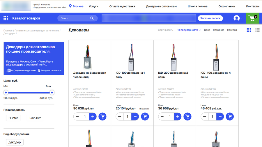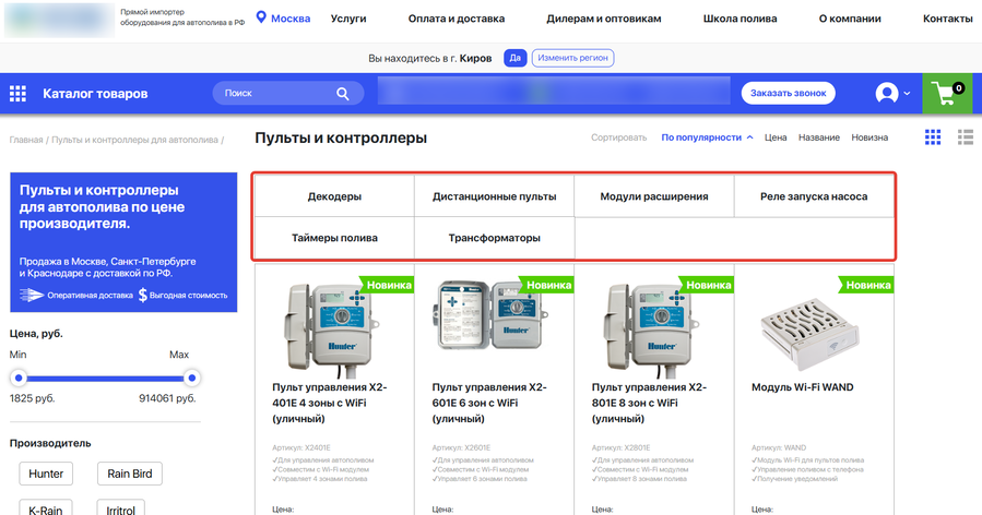 Что сделали: добавили страницы по характеристикам товаров и сферам применения (например, «электромагнитный клапан 24V», «система автополива парков»).