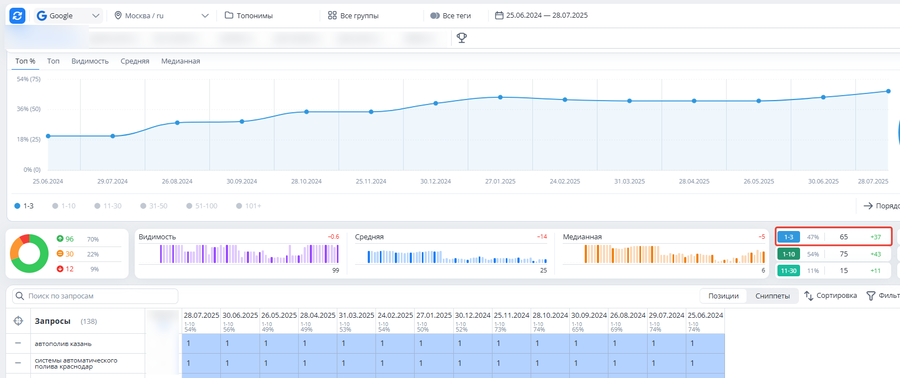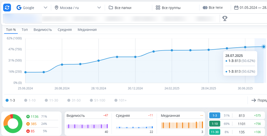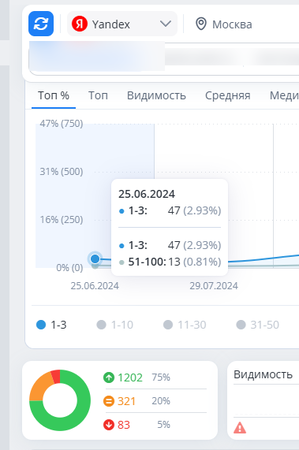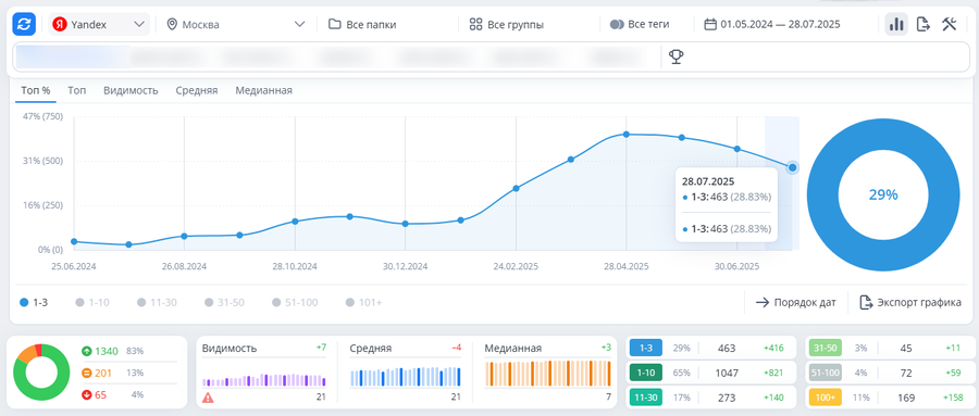 Процент в ТОП-3 Яндекс на 28.07.25:
