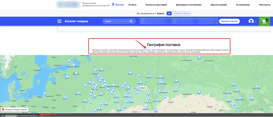 Создание региональных страниц под запросы вида «автополив + город» даст прирост видимости и увеличит целевой трафик на сайт.