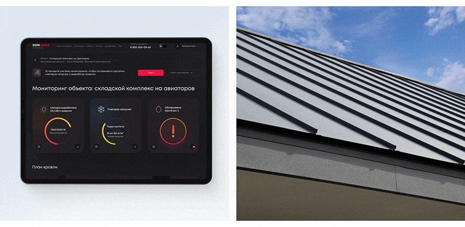 Нам удалось разработать интерфейс кабинета «Умной крыши», который ежедневно помогает владельцам домов и промышленных объектов отслеживать ситуацию на крыше и экономить за счет этого время и деньги.