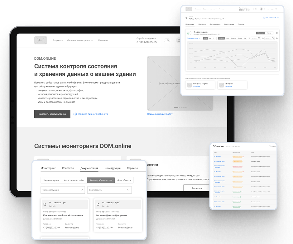 Начали с детализированных прототипов, чтобы максимально быстро и с минимальными затратами визуализировать интерфейс кабинета, отразить все функциональные возможности и данные поступающие с каждого датчика.