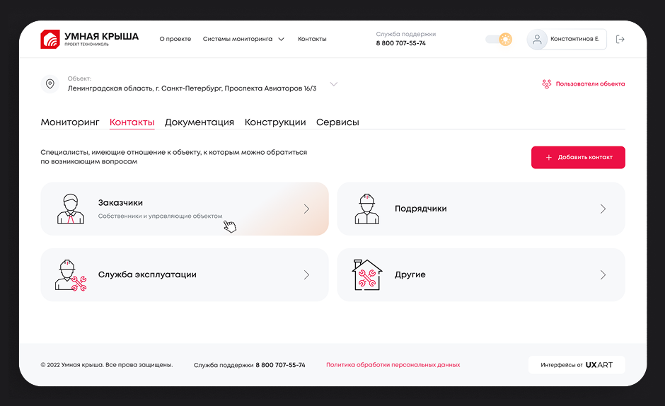 — Собрать внутри ЛК всю важную информацию о крыше: контакты специалистов, документацию, характеристики, планировку;