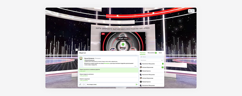 В случае с мероприятием важно было уместить весь функционал в компактном окне и сохранить удобство. Мы выделили два блока: пространство чата и список участников.