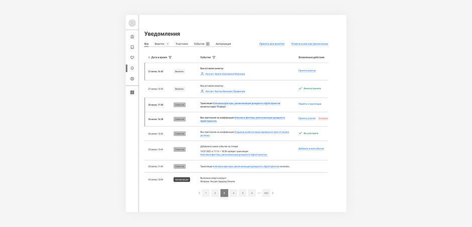 В уведомлениях разместили табы для быстрого ориентирования. ?Каждое уведомление имеет свой тег. Это важно для того, чтобы пользователь ?мог быстро визуально отделять их друг от друга