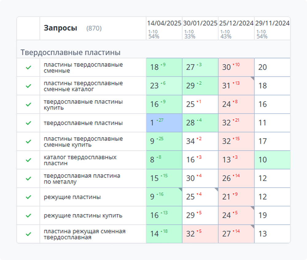 Команда сформировала расширенное семантическое ядро, которое легло в основу контентной стратегии. Для эффективности была настроена система идентификации позиций в Топвизоре.
