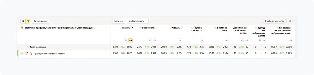 Спустя полгода комплексной работы над проектом была устойчивая положительная динамика. Анализ данных Яндекса (как основного источника трафика) показал следующие результаты: