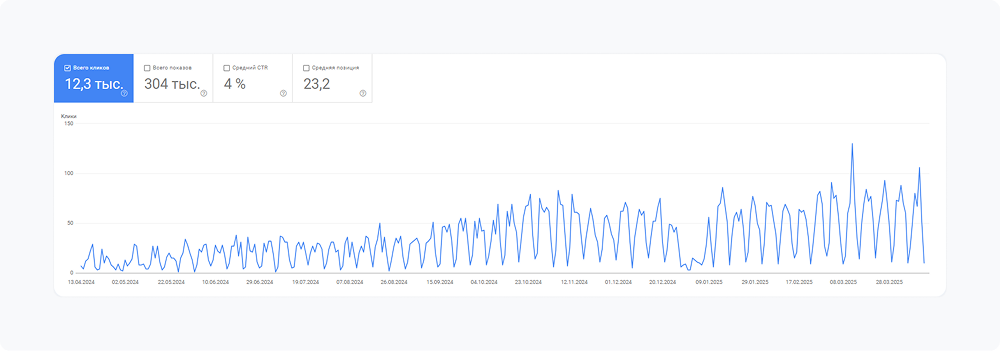В Google также наблюдается позитивная тенденция: CTR вырос с 40 кликов в день до 100, что подтверждает эффективность работы с семантикой, метатегами и микроразметкой.