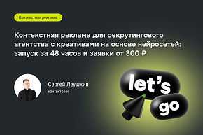 Контекстная реклама для рекрутингового агентства с креативами на основе нейросетей: запуск за 48 часов и заявки от 300 ?